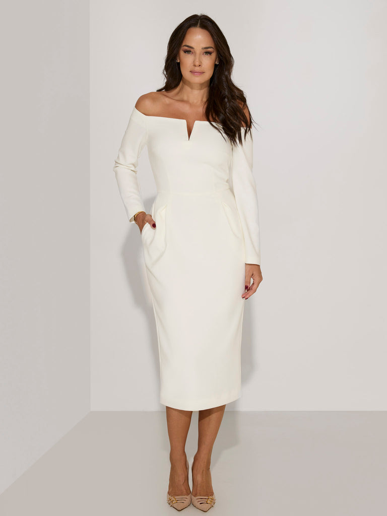 Rochie Iman cu umerii goi alba – Andreea Raicu
