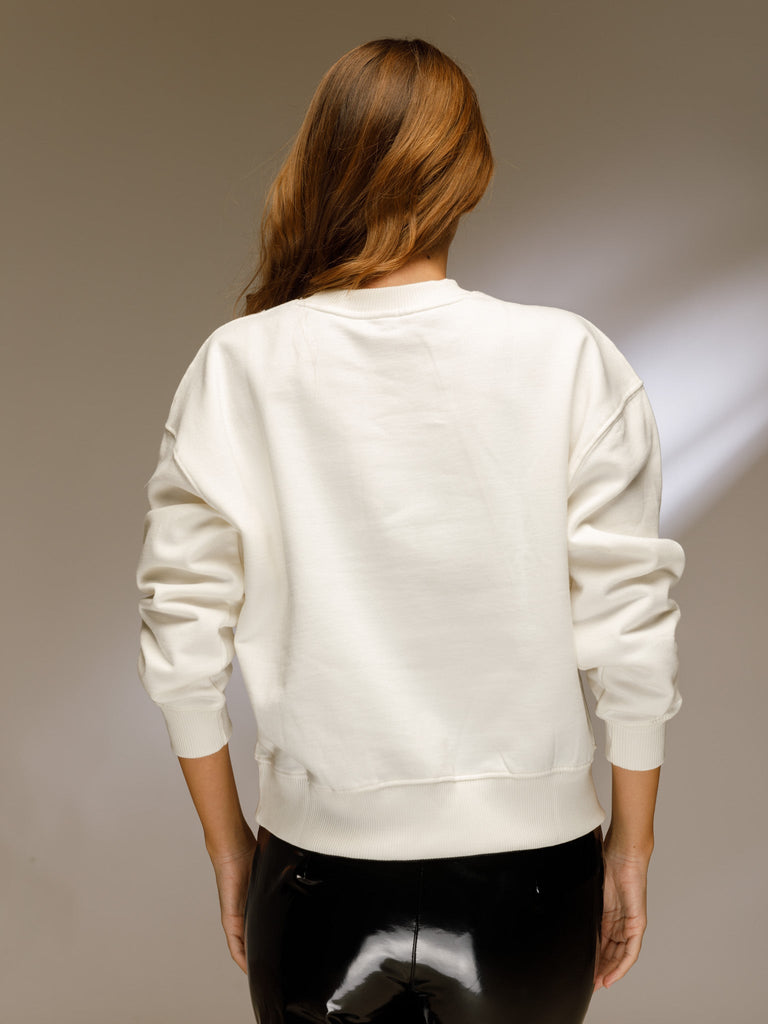 Hanorac Riley din bumbac organic alb cu imprimeu de catifea