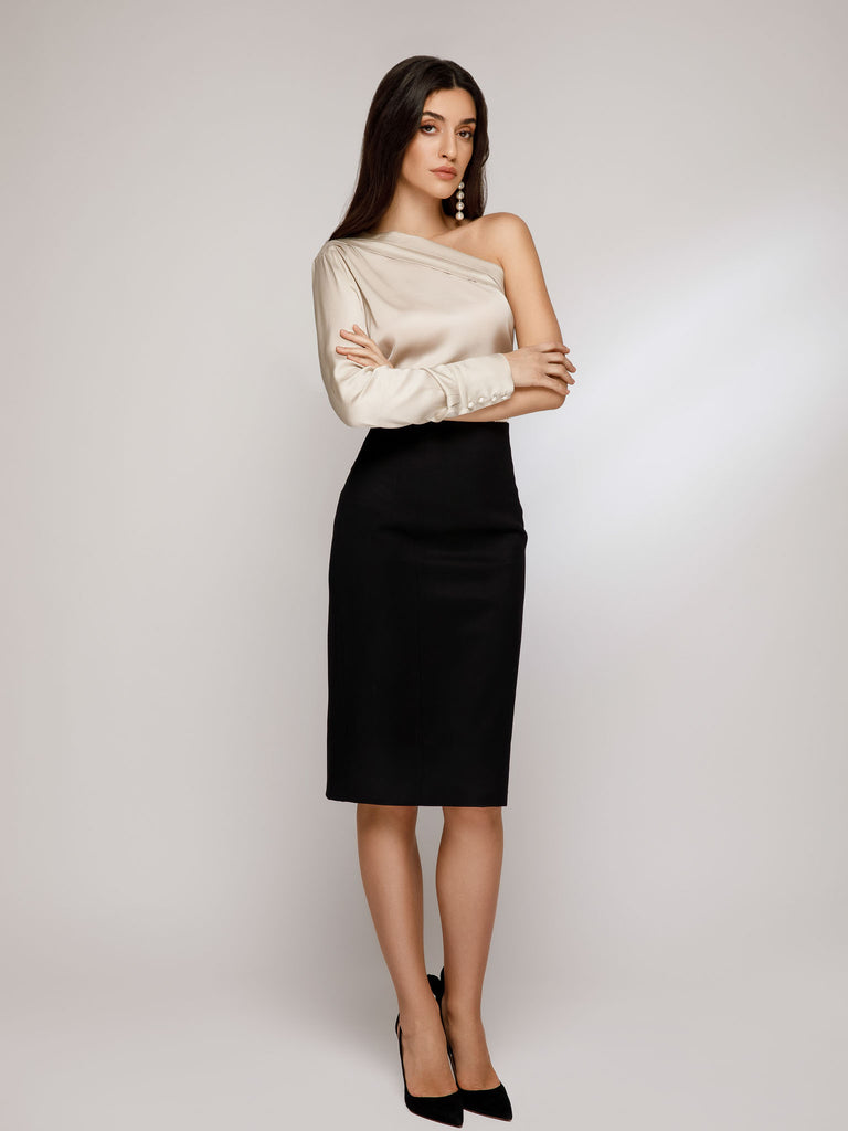 Camasa din viscoza cu un umar gol alb perlat confera un aer sofisticat si versatilitate garderobei tale. Poate fi purtata cu blugi pentru un look casual elevat, cu o fusta conica pentru un stil office glam sau cu o fusta de paiete pentru o iesire stralucitoare in oras. Alege aceasta bluza pentru a-ti transforma cu usurinta aparitia in functie de ocazie.
