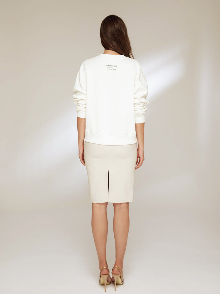 Hanorac alb din bumbac organic cu imprimeu de catifea MAGIC