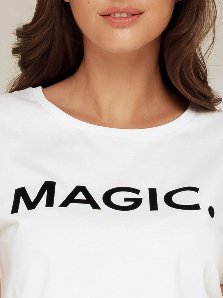 Tricou alb din bumbac organic cu imprimeu de catifea MAGIC
