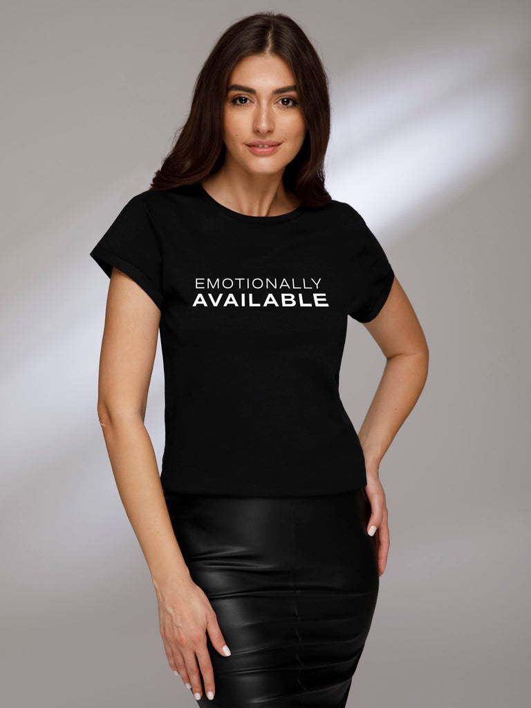 Tricou negru din bumbac organic cu imprimeu de catifea EMOTIONALLY AVAILABLE