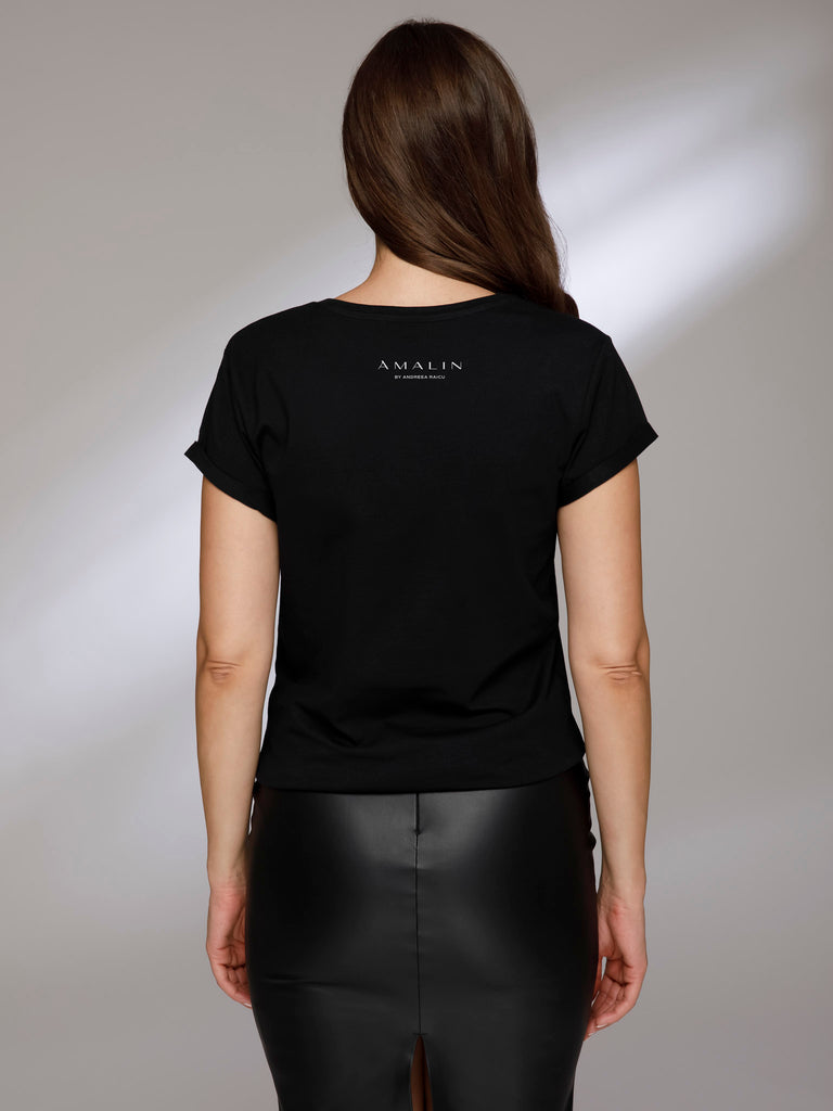 Tricou negru din bumbac organic cu imprimeu de catifea HEALING HAPPENS BY FEELING