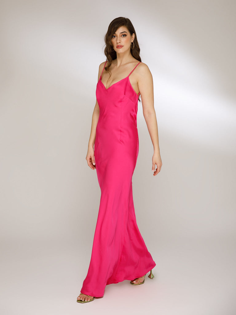 Long fuchsia bare back dress - Amalin by Andreea Raicu