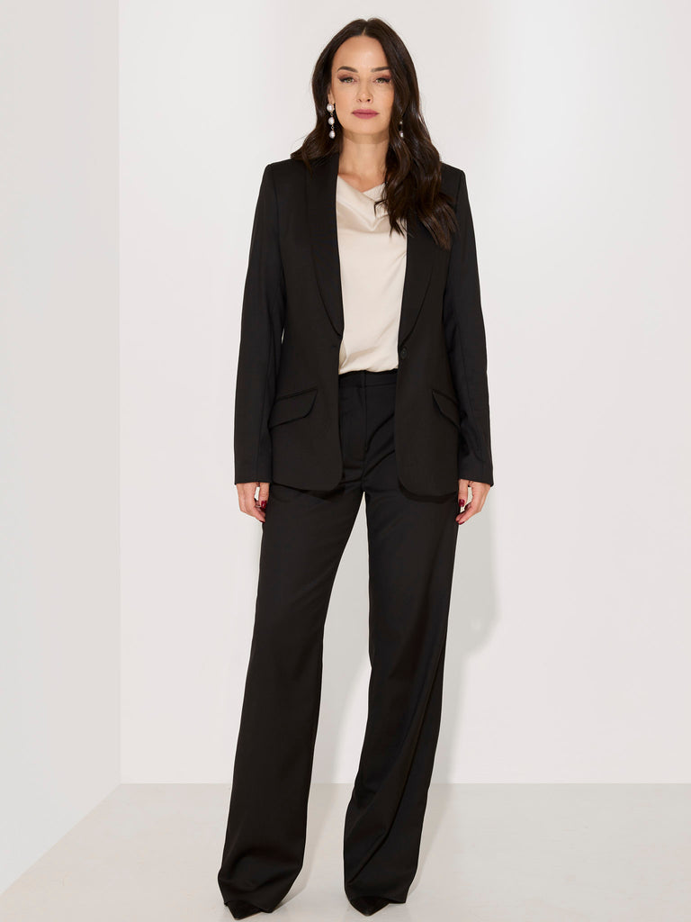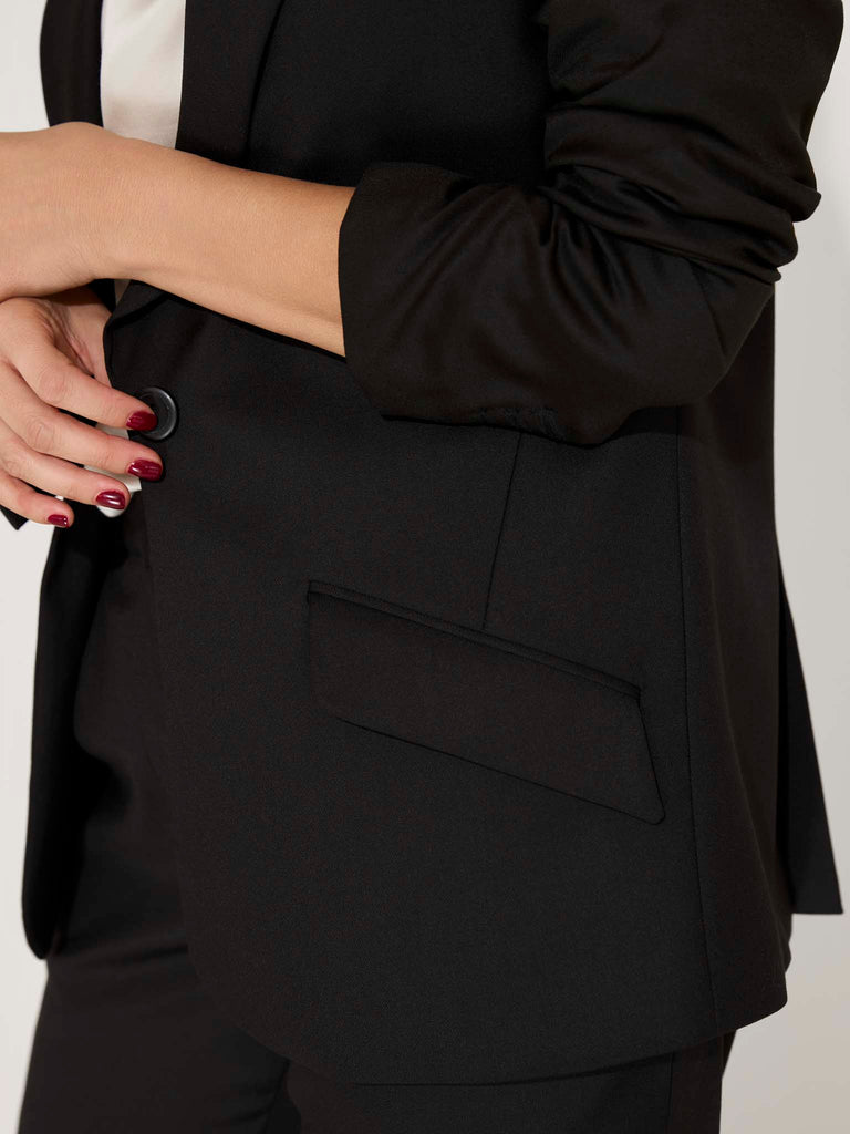 La birou sau întâlniri de afaceri: Combină sacoul cu o cămașă albă sau bluza de matase, pantaloni eleganți și pantofi clasici.